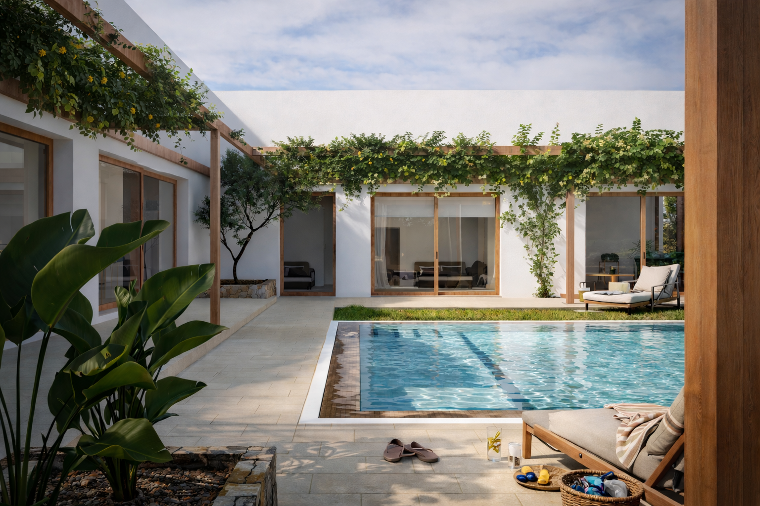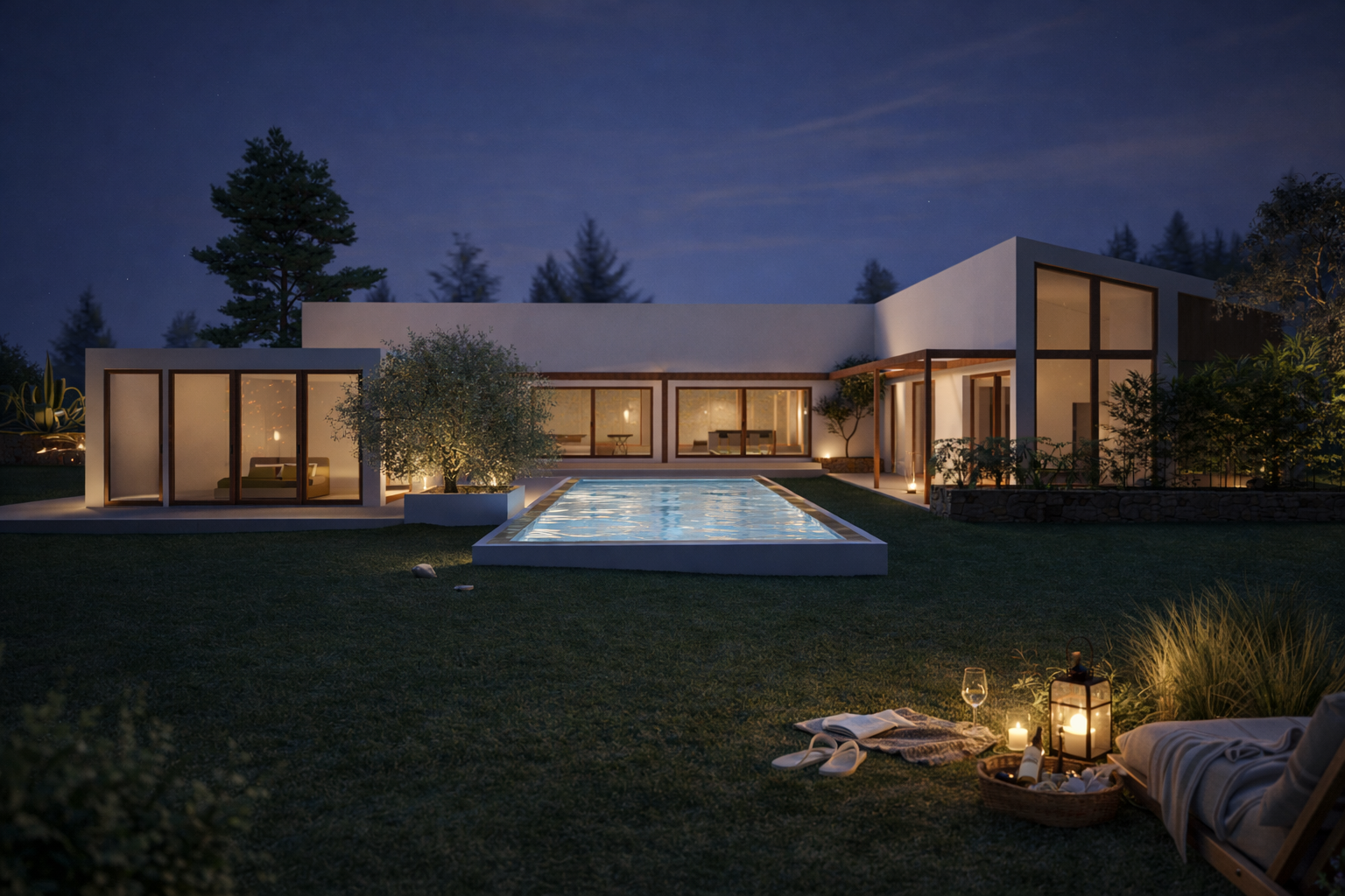 This architectural project for a private residence aims to create a contemporary, elegant, and functional space, designed for a young entrepreneur. The residence is developed on a single level, ensuring a seamless connection between the various interior spaces and maintaining a direct relationship with the surrounding landscape.