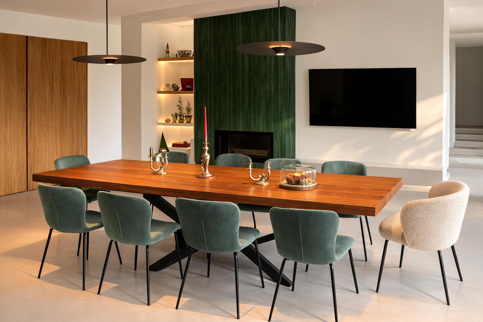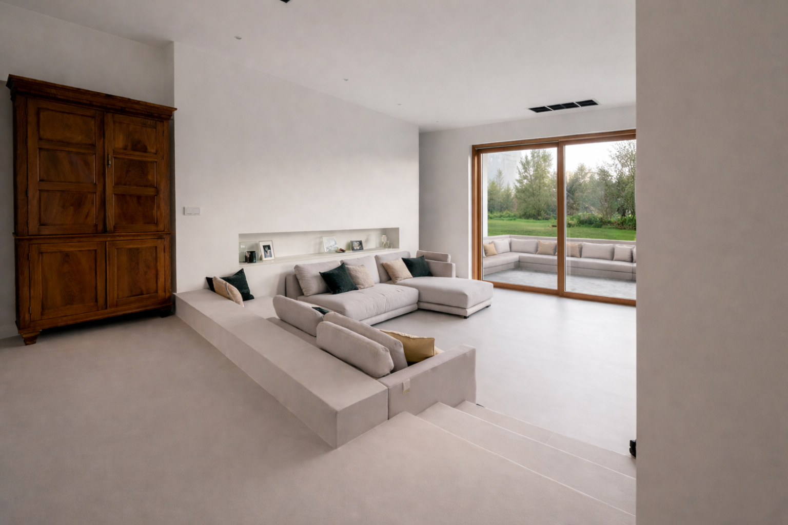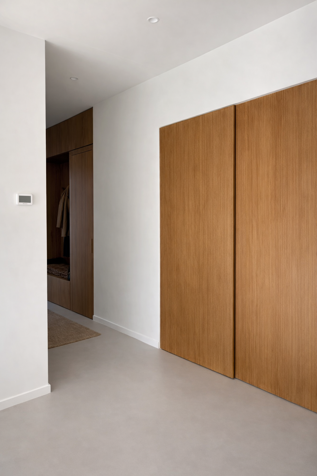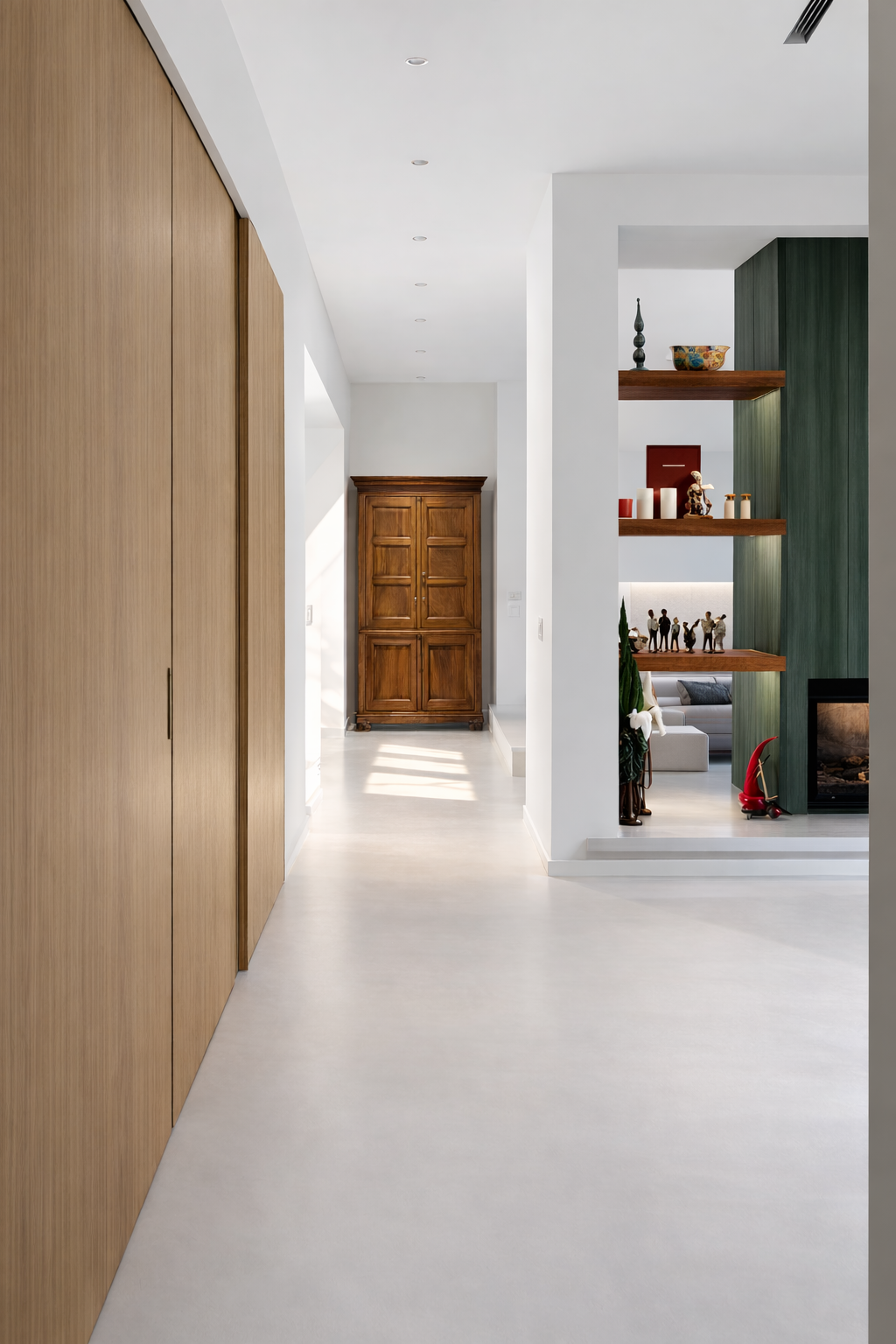 The residence is developed on a single level, a choice that enhances the dialogue between indoor and outdoor spaces, creating a seamless visual and functional connection with the agricultural landscape. The spatial layout has been carefully crafted to ensure flexibility and livability, while a play of sectional level drops adds dynamism and depth to the interior spaces, enriching the living experience.