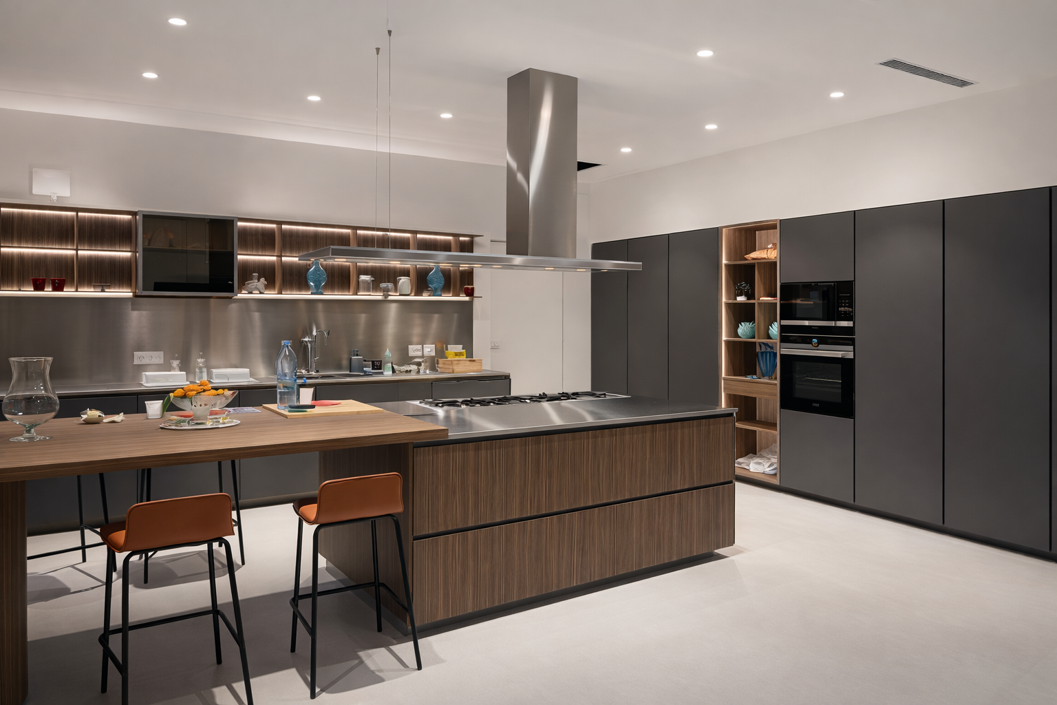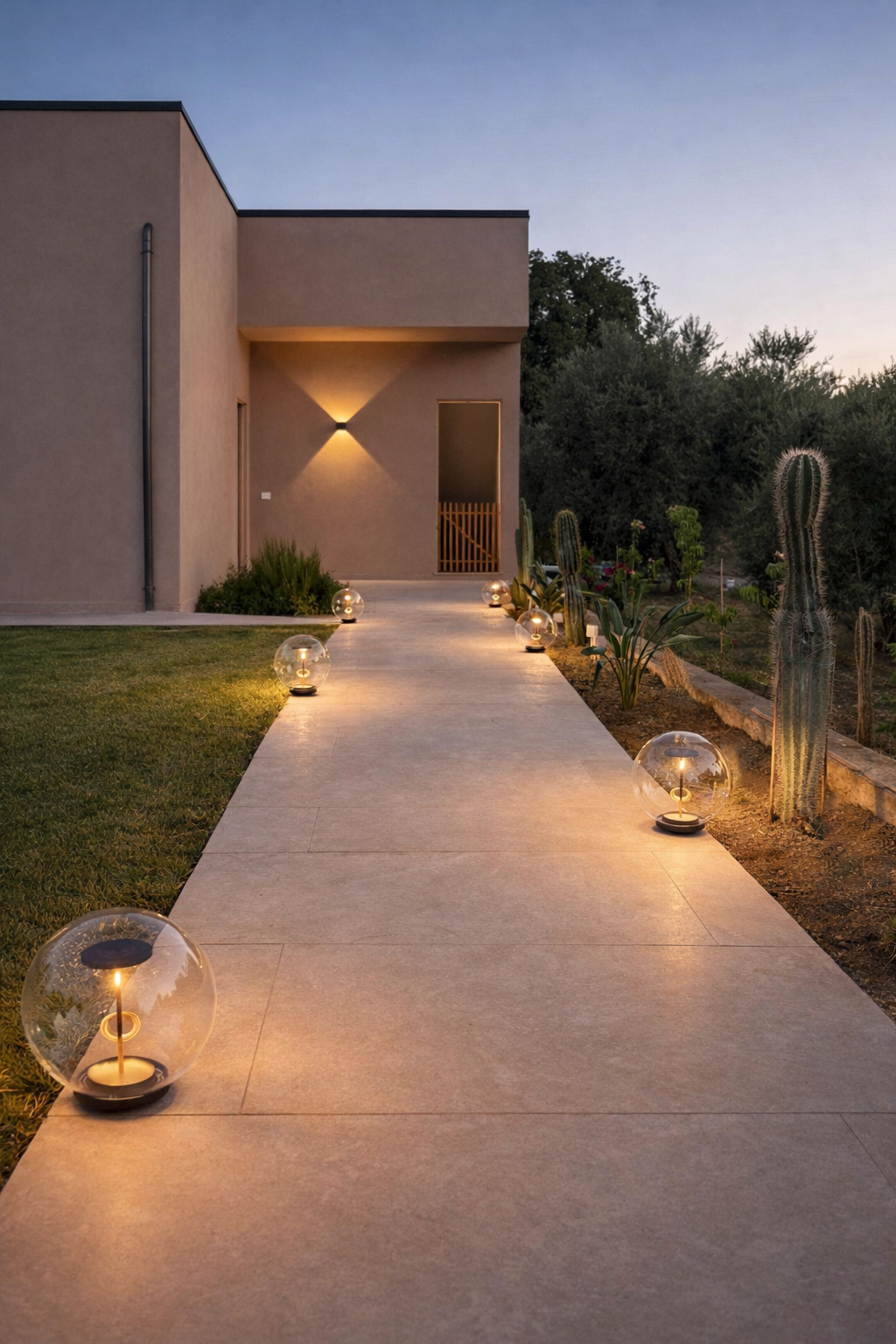The terrace serves as a central element of the project: conceived as a natural extension of the living area, it provides an outdoor space for relaxation and socializing, with an open view over the orange grove. The selection of materials and finishes was guided by the desire to create an environment that is both modern and respectful of local tradition, with a color and material palette designed to harmonize with the Mediterranean context.