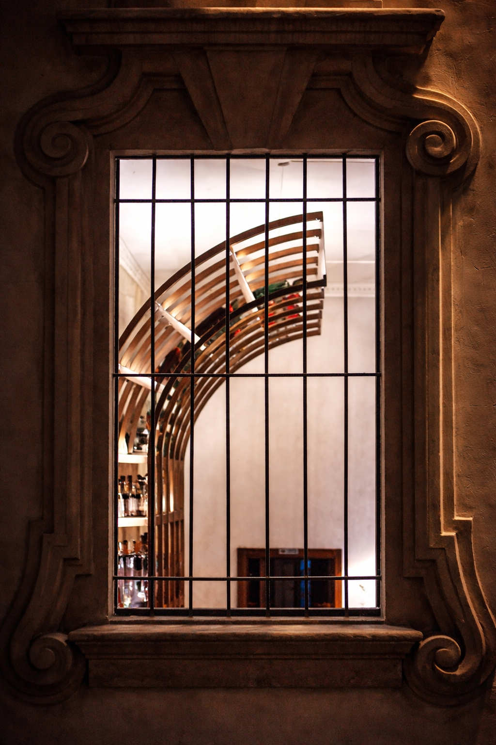 In this project, a small cocktail bar was created within a historic building, where the custom-designed furnishings play a central role.